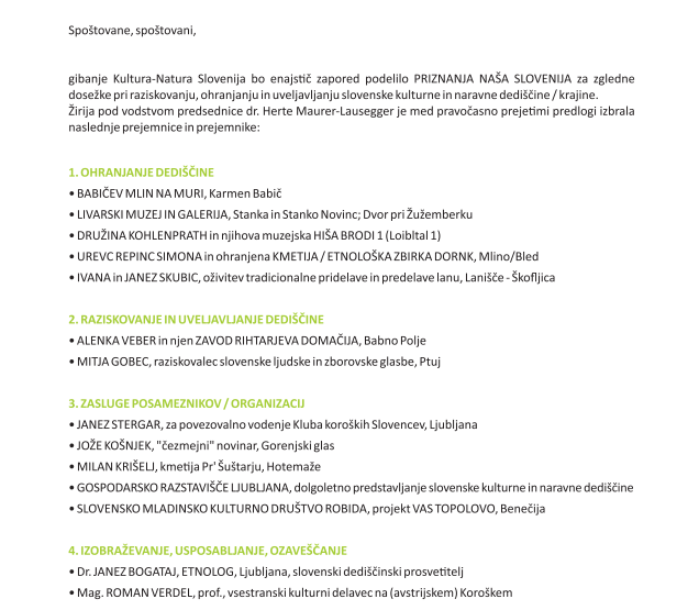 Jeseni 2023 je spletna stran www.kultura-natura.si zaradi tehničnih težav začasno “ugasnila”.